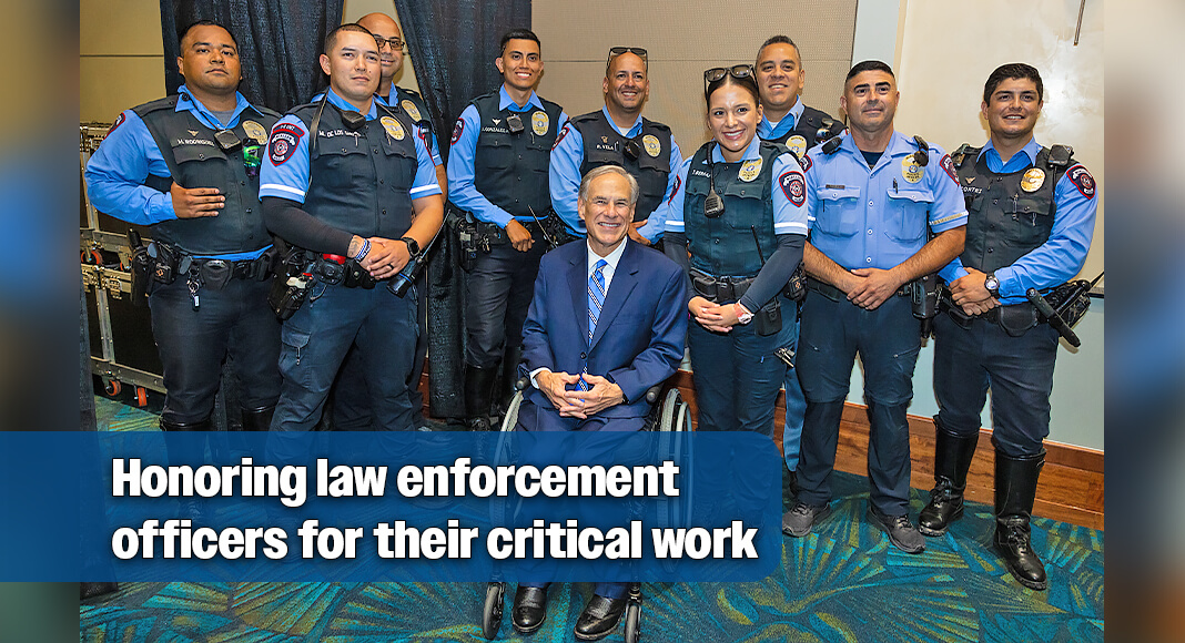 McALLEN — Governor Greg Abbott presented Texas Officer of the Year Awards and honored law enforcement officers for the critical work required to keep Texas safe at the Combined Law Enforcement Associations of Texas (CLEAT) annual convention.