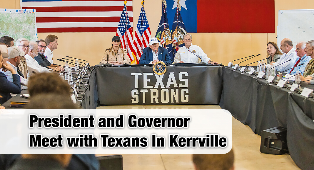 Kicking off the visit in Kerrville, Governor Abbott and First Lady Abbott greeted President Trump and First Lady Trump on the tarmac at Kerrville Aviation. Following the tarmac greeting, the Governor and President Trump met with first responders and local officials at Louise Hays Park to receive an update on the search and rescue efforts and recovery operations that remain ongoing in Kerr County and communities across the state.