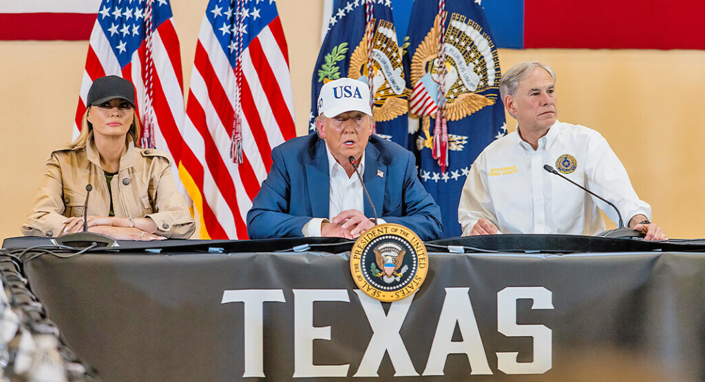 KERRVILLE — Governor Greg Abbott and First Lady Cecilia Abbott today joined President Donald J. Trump and First Lady Melania Trump during a visit to Kerr County to meet with Texas families and first responders regarding the recent severe flooding and heavy rainfall that devastated communities across Texas. The Governor and First Lady also visited the Wall of Hope in downtown Kerrville.