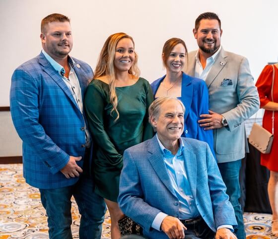 The Governor was joined at the annual Combat Marine Outdoors (CMO) Gala by Acting Texas Comptroller of Public Accounts Kelly Hancock, Representatives Charles Cunningham, Morgan Meyer and Dennis Paul, United States Marine Corps (USMC) Ret. Colonel and CMO Co-Founder and President Alan Orr, USMC Ret. Master Gunnery Sergeant and CMO Co-Founder and CEO Arturo Garcia, and other state and local officials.
