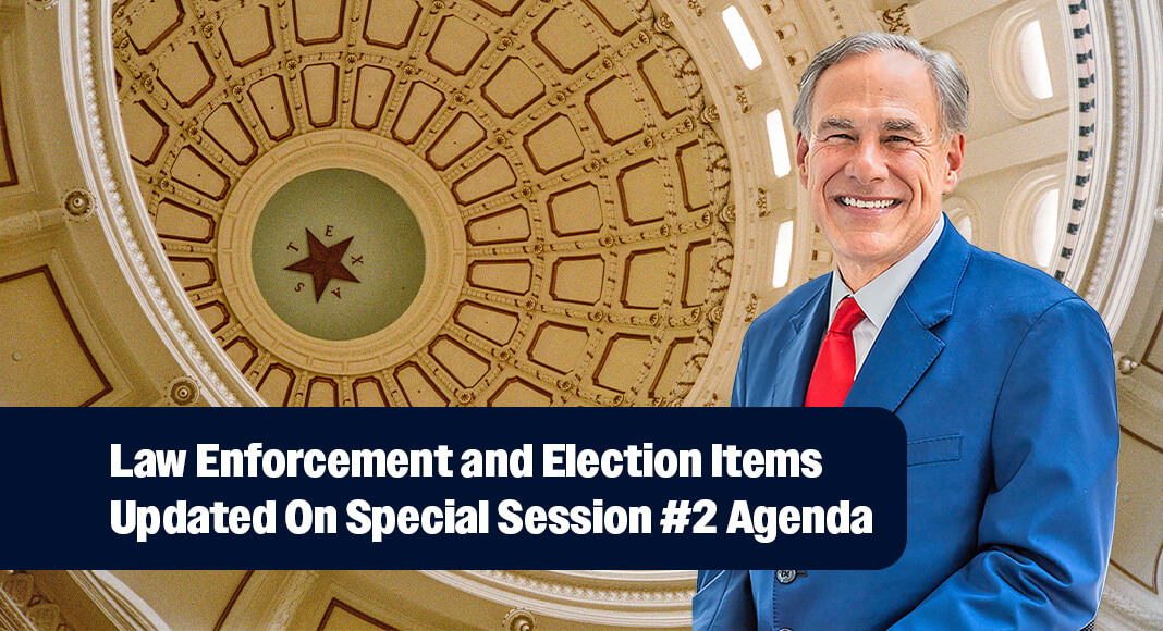 AUSTIN — Governor Greg Abbott sent a message to the Texas Legislature updating language previously added to the Special Session #2 agenda that will protect law enforcement and safeguard Texas elections.
