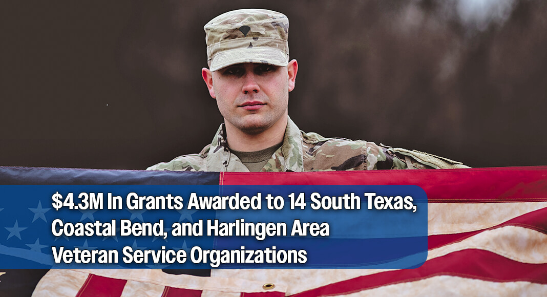 Governor Greg Abbott has announced that Fund for Veterans’ Assistance (FVA) grants totaling more than $4.3 million were awarded to 14 organizations in South Texas, Coastal Bend, and Harlingen areas as part of the Texas Veterans Commission’s Grants Across Texas presentations. Administered by TVC, the funding will provide services to more than 2,170 area veterans and their families across 19 counties.