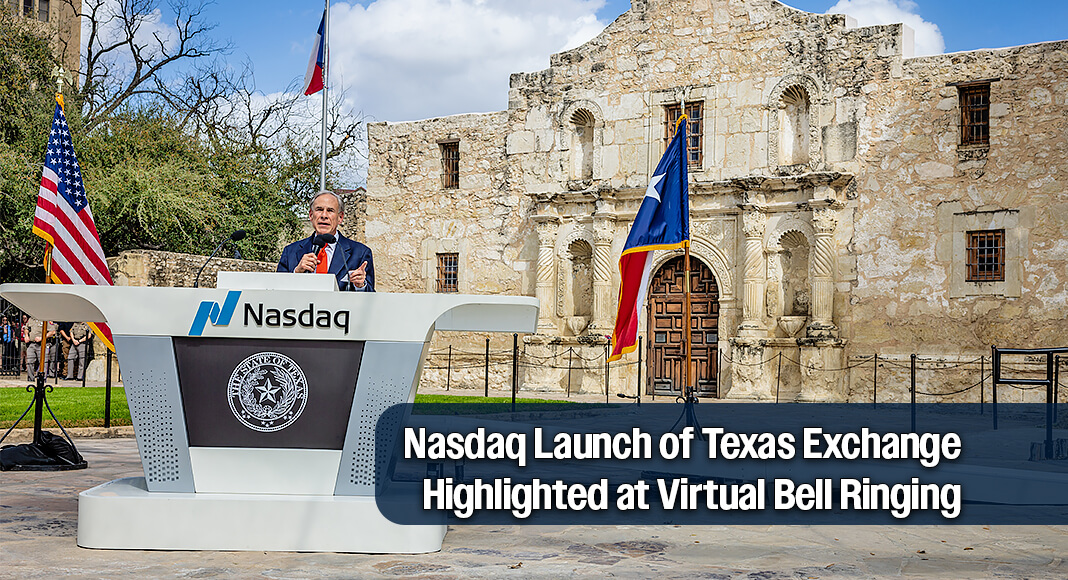 In November, Nasdaq announced they were launching their own Texas financial exchange, Nasdaq Texas. Nasdaq Texas is a new dual listing venue aimed to expand services across the state and grow investment opportunities to U.S investors.