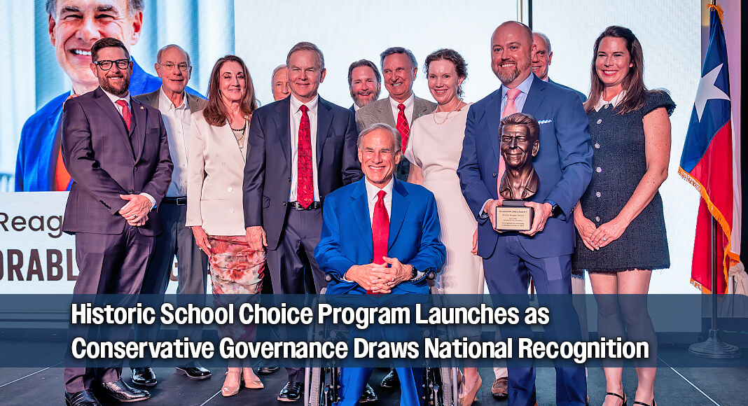 AUSTIN — Governor Greg Abbott was awarded the Texas Public Policy Foundation’s (TPPF) Ronald Reagan Award in recognition of his proven conservative stewardship of Texas and for launching the largest day-one school choice program in America during the Texas Policy Summit’s annual award dinner.