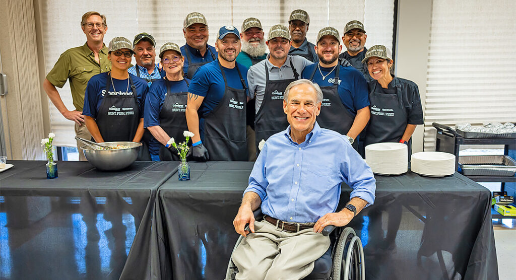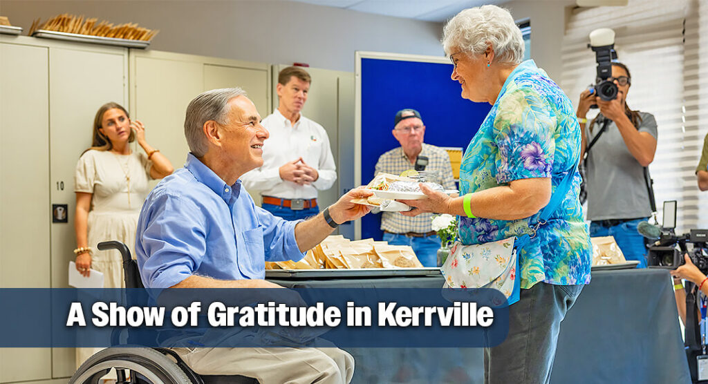KERRVILLE — Governor Greg Abbott joined Hunt. Fish. Feed. and Spectrum to serve meals to volunteers who helped rebuild the Dietert Center, the only senior community center in the Kerrville area, following the historic flooding in July.