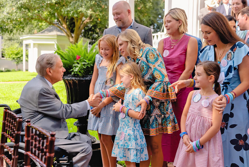The Governor was joined by Lieutenant Governor Dan Patrick, Senator Charles Perry, Representative Drew Darby, the Heaven’s 27 families, and other state officials.