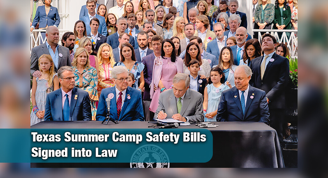AUSTIN — Governor Greg Abbott signed House Bill 1 (the Youth CAMPER Act), Senate Bill 1 (the Heaven’s 27 Camp Safety Act), and Senate Bill 3 at the Governor’s Mansion to enhance safety measures at Texas summer camps and better protect Texans from catastrophic flooding events.