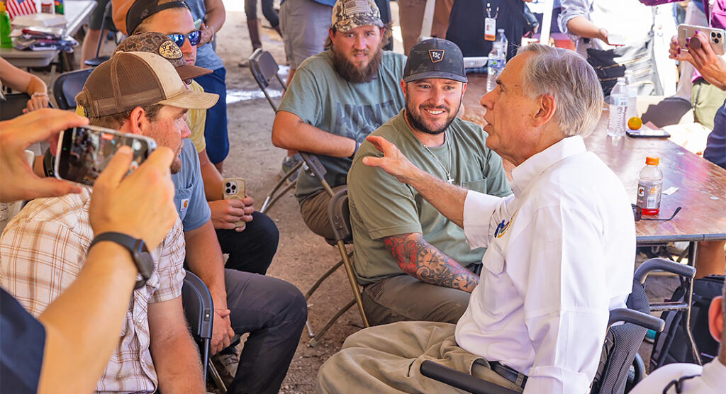 The Governor was joined on the aerial tour and at the press conference by Speaker Dustin Burrows, Texas Division of Emergency Management Chief Nim Kidd, Texas Department of Public Safety Colonel Freeman Martin, Adjutant General of Texas Major General Thomas Suezler, and other state officials.