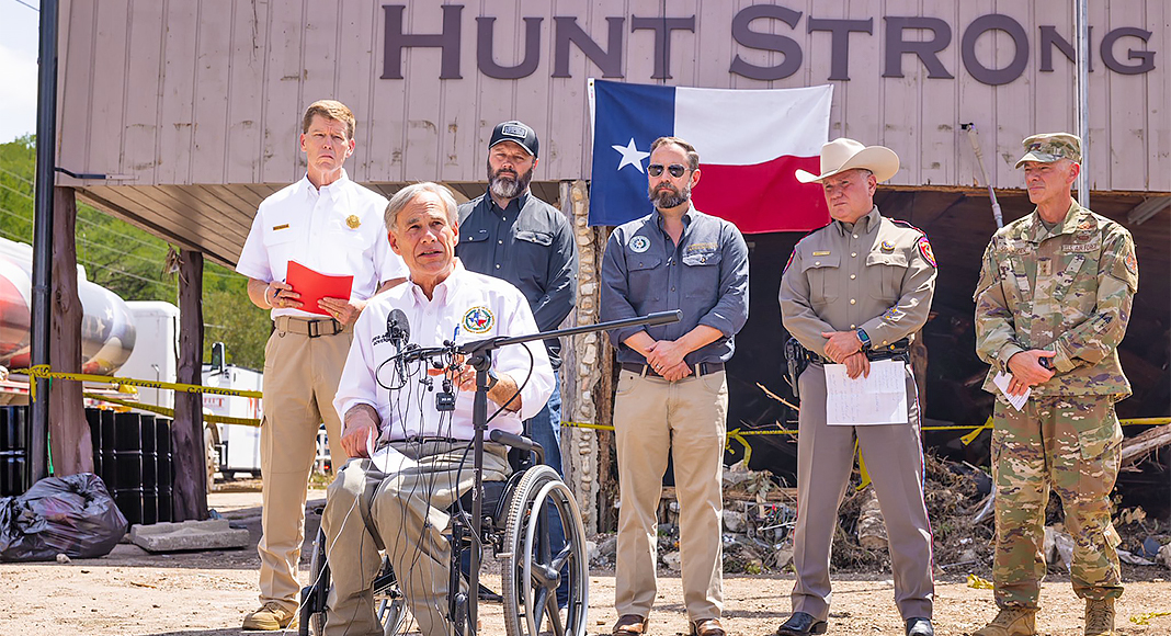 HUNT – Governor Greg Abbott held a press conference at the Hunt Store following an aerial tour of flood damage to provide an update on the state’s continued response to severe flooding that impacted Texas.