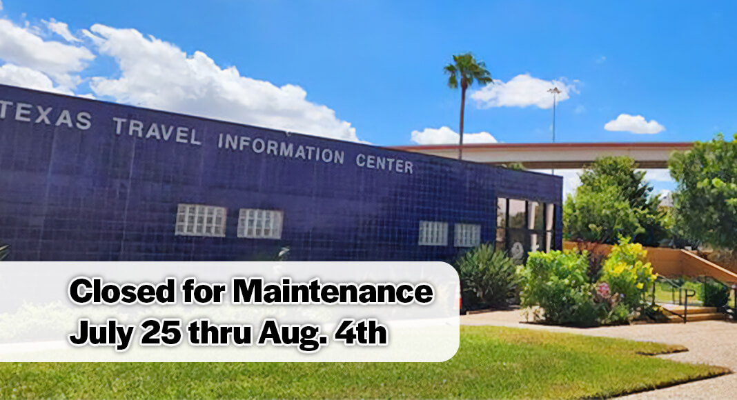 HARLINGEN- The TxDOT Travel Information Center, at 2021 West Harrison in Harlingen, will temporarily close, beginning Friday, July 25, for building maintenance. A tentative reopening is planned for August 5.