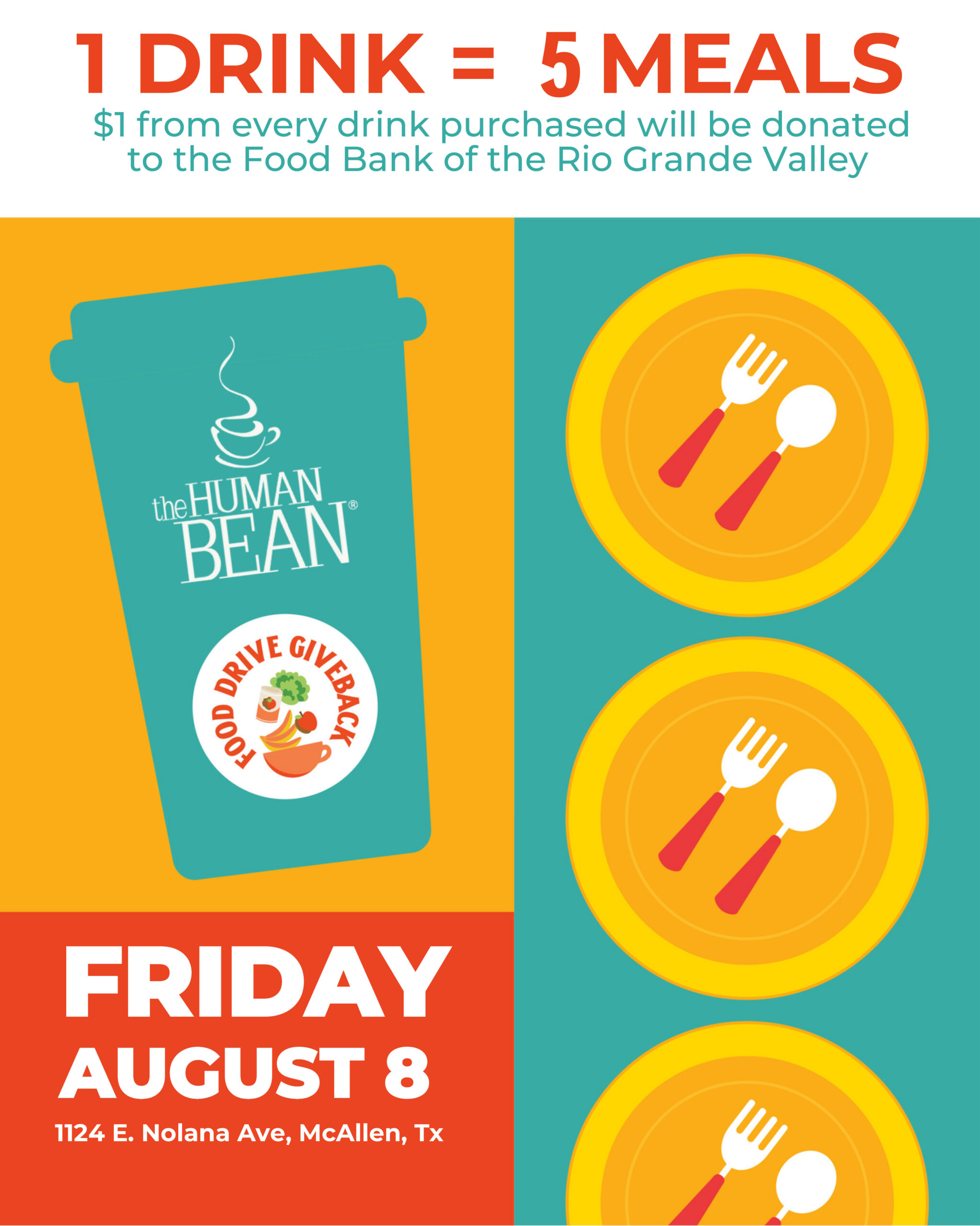 McALLEN, Texas– The Human Bean in McAllen is hosting its Annual Food Drive on Friday, August 8. On this special day, one dollar for every drink sold will be donated to Food Bank of The Rio Grande Valley to support food assistance programs locally.