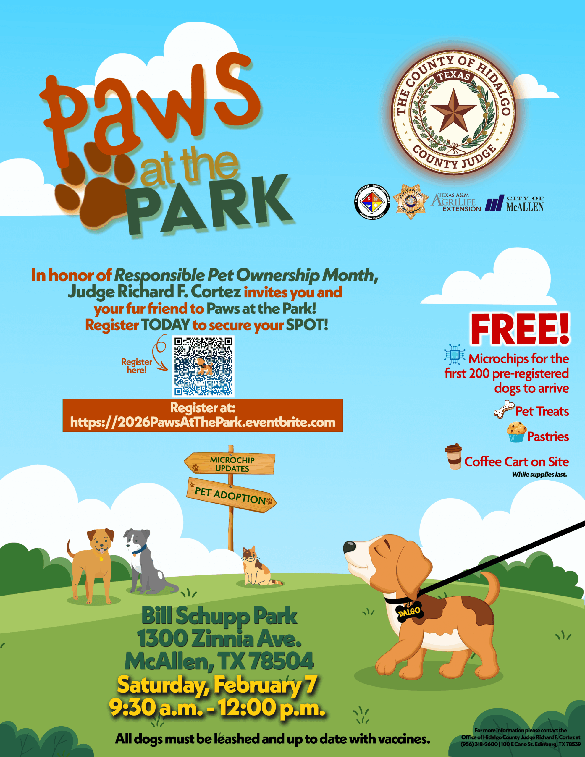 “As pet owners, we share a responsibility to ensure our animals are healthy, safe, and cared for throughout their lives,” said Hidalgo County Judge Richard F. Cortez. “By promoting microchipping, spaying and neutering, and routine vaccinations, events like “Paws at the Park” help strengthen public safety, reduce pet overpopulation, and support healthier pets and communities.”