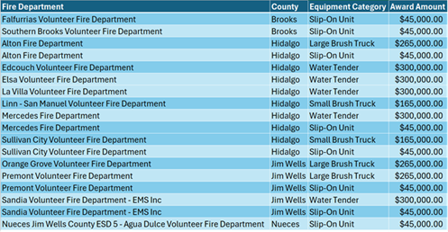 On October 14, the Texas A&M Forest Service hosted its first Funding Meeting for Fiscal Year 2026, where approximately $164 million in grants were awarded. Nearly 900 grants were distributed statewide, providing important support to Texas volunteer fire departments. Within the counties of Senate District 20—Brooks, Hidalgo, Jim Wells, and Nueces—volunteer fire departments received nearly $3 million in grants.