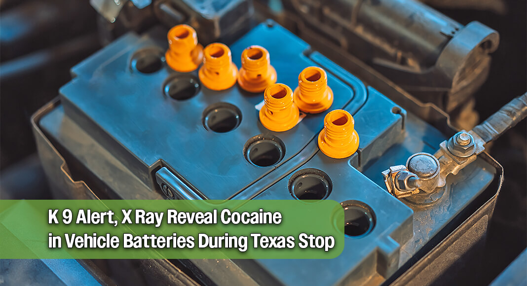 Authorities observed a second battery in the engine compartment that displayed evidence of tampering. An X-ray scan showed the batteries lacked internal components. A K-9 also alerted to the presence of narcotics.