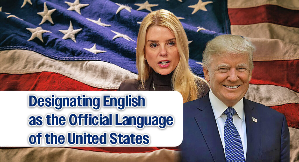 “As President Trump has made clear, English is the official language of the United States,” said Attorney General Pamela Bondi. “The Department of Justice will lead the effort to codify the President’s Executive Order and eliminate wasteful virtue-signaling policies across government agencies to promote assimilation over division.”