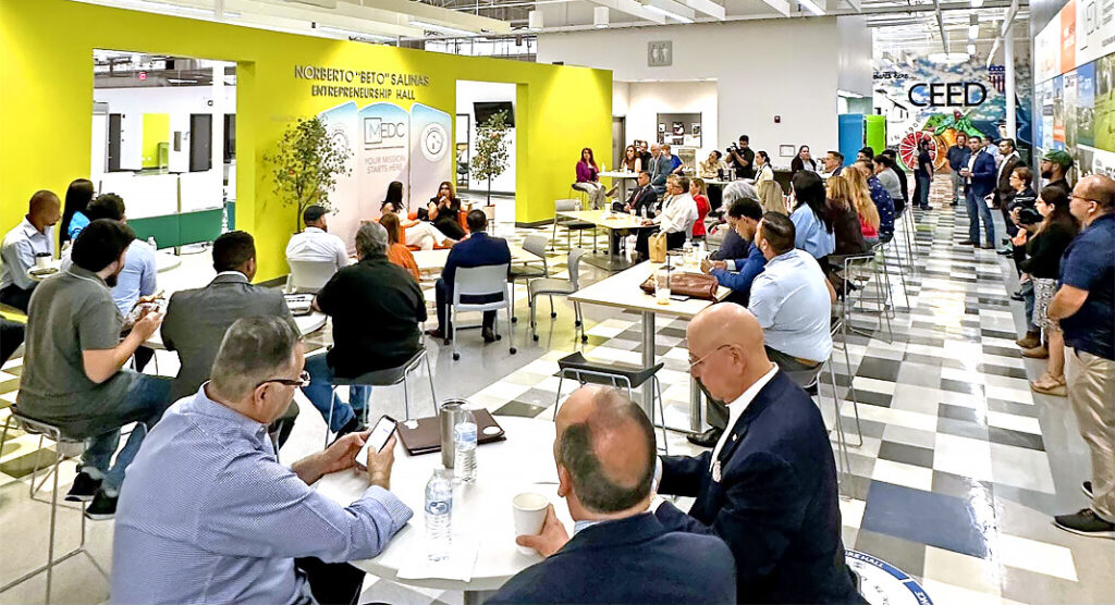 Founded in 1978 by Félix Chávez Jr. (nicknamed “Junior”) as a convenience store, Junior’s now operates eight or nine full‑scale grocery stores in the Rio Grande Valley. It employs hundreds across the RGV and sources from many local businesses. Recently, Junior’s “leased an office suite in our CEED Building as part of its expansion,” and the firm was the focus of a Mission EDC Business Over Breakfast networking event attended by some 75 business and community leaders. The event extended “a warm Mission welcome to the entire Junior’s family, including CEO Joseph Welsh and Elizabeth Chavez, VP of Development & Community Engagement.”