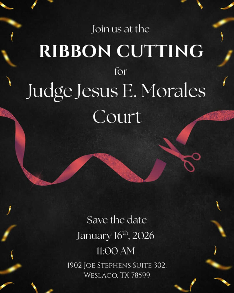 WESLACO – Hidalgo County Justice of the Peace Pct. 1, Pl. 2 Andrew Gonzalez will honor the late Justice of the Peace Jesus E. Morales in the renaming of the Justice Court to carry on his legacy. A ribbon cutting ceremony will be held on Friday, January 16 at 11 a.m. at the court located at 1902 Joe Stephens Ave. Suite 302 in Weslaco.