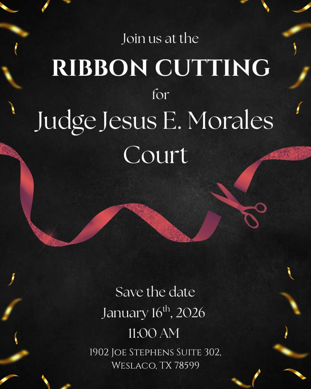 | · What: Ribbon Cutting for Judge Jesus E. Morales |