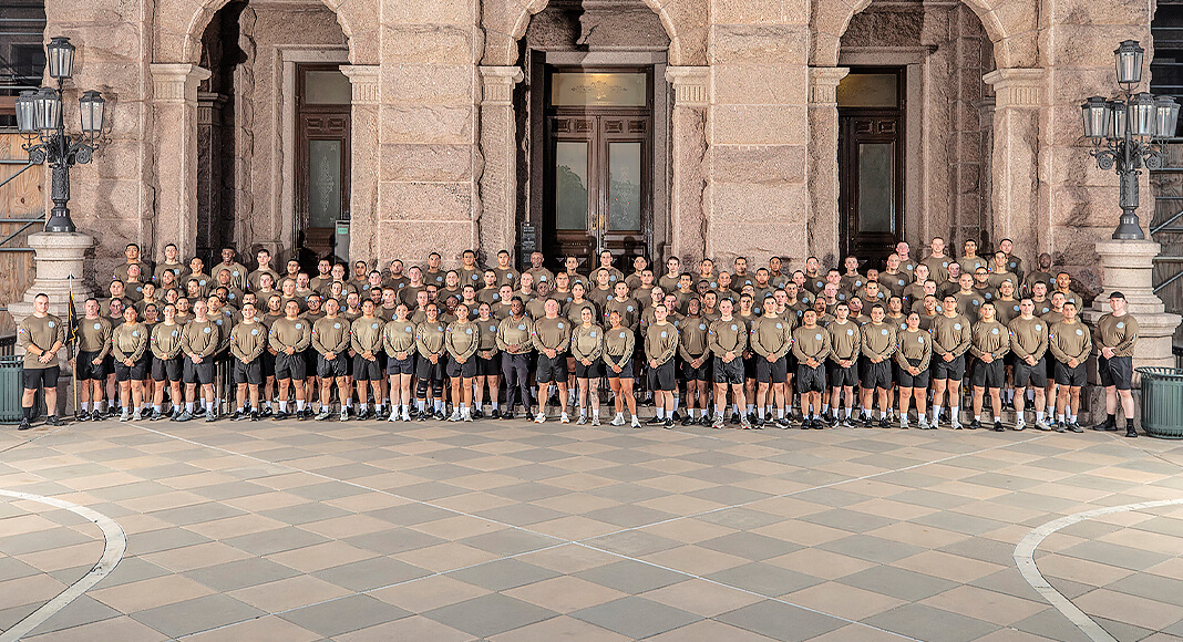 Public Safety Commissioner Larry Long and Colonel Martin addressed the class before departing Camp Mabry around 5:30 a.m. Class A-2025 ran from Camp Mabry through the streets of Central Austin, onto the University of Texas Campus and past the Governor’s Mansion before arriving at the Capitol’s south steps. There, they were met by family members who cheered them on.