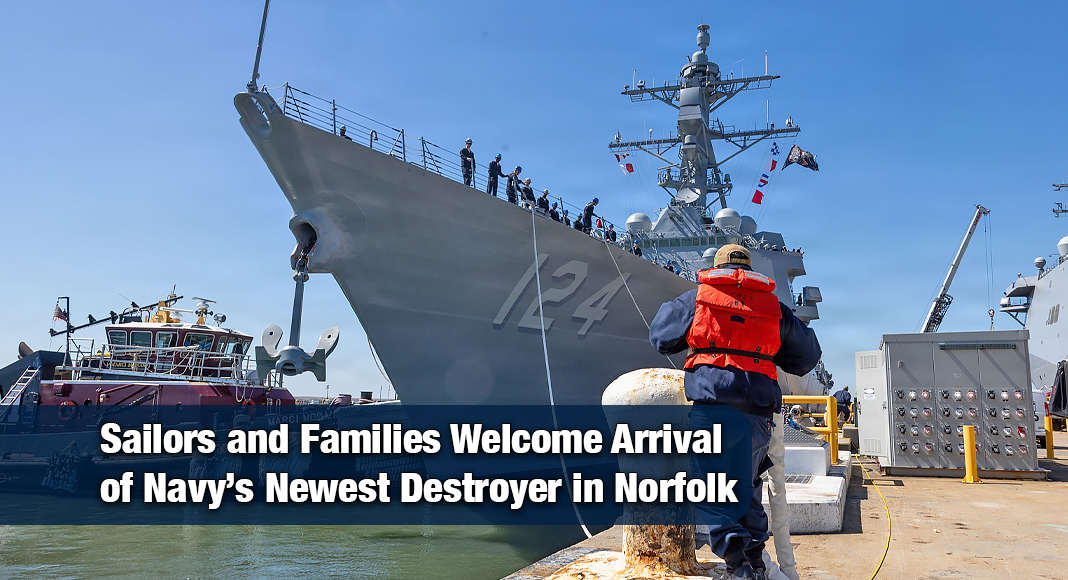 The Navy’s newest destroyer, the future USS Harvey C. Barnum Jr., arrived at its home port, Naval Station Norfolk, Virginia, March 20, ahead of its commissioning ceremony, scheduled for April 11.
