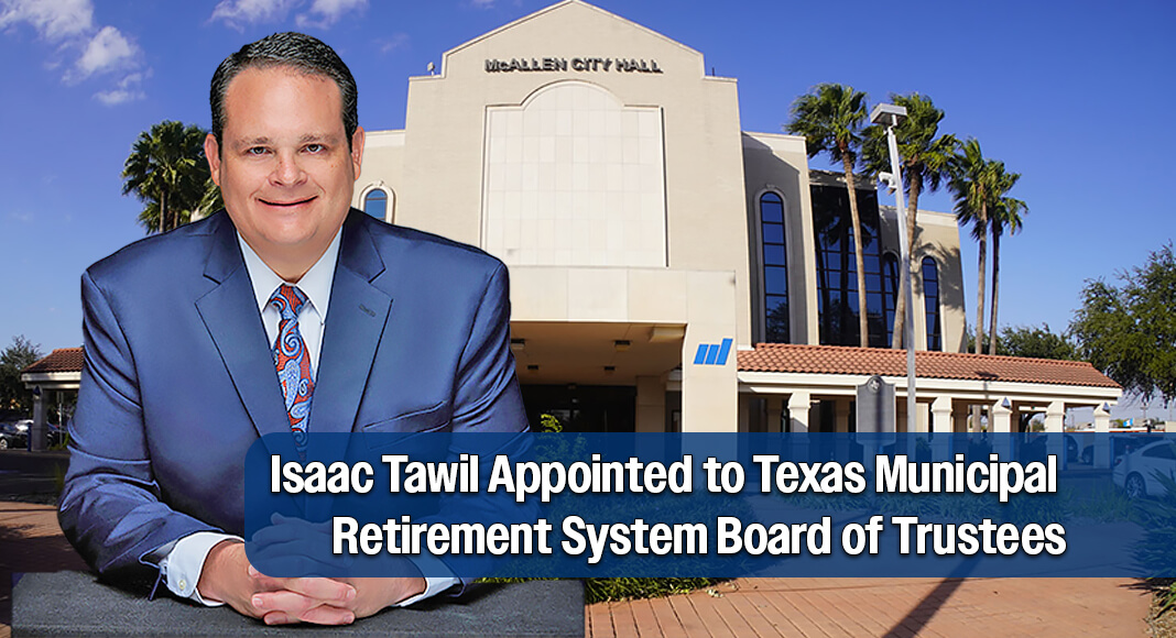 The City of McAllen proudly announces that City Manager Isaac Tawil has been appointed by Governor Greg Abbott to serve on the Board of Trustees of the Texas Municipal Retirement System (TMRS), a statewide organization serving over 940 cities and more than 225,000 active municipal employees across Texas.