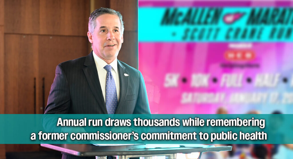 Irma Chapa, the city’s director of communications, opened the press conference by saying, “The McAllen Marathon is also deeply personal for our city and for our employees,” Chapa said. “It proudly carries the name of Scott Crane, a beloved three-year term city commissioner and local business owner who believes strongly in improving the quality of life for our residents.” She said Crane was a champion for parks, trails, and community fitness, and that his passion for running helped shape the marathon into what it has become.
