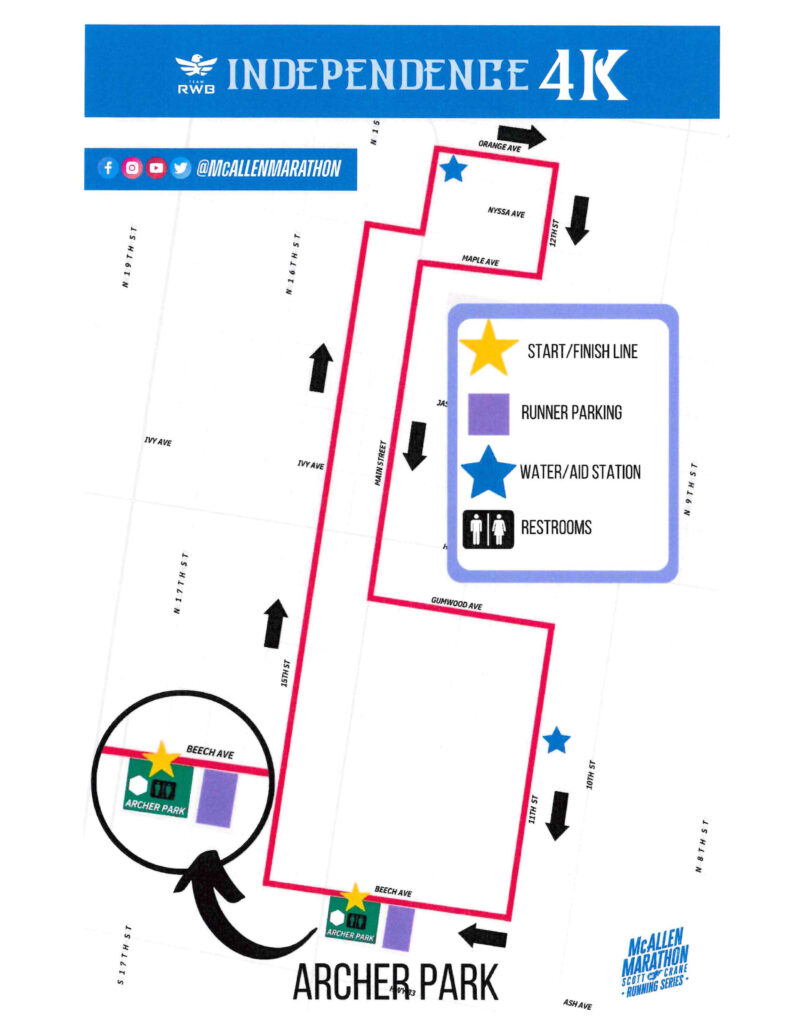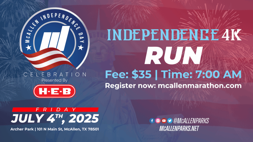 The celebration begins at 7:00 a.m. with the Independence Day 4K Run, hosted in partnership with Team Red, White and Blue, a national veterans’ organization. Registration is $35 and open at www.mcallenmarathon.com. Awards will be presented across various age categories.