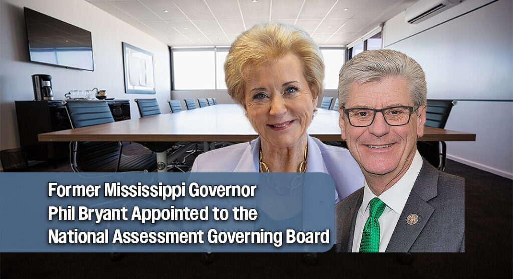 U.S. Secretary of Education Linda McMahon today announced the appointment of former Mississippi Governor Phil Bryant to the National Assessment Governing Board (NAGB). He fills one of two seats designated for state governors from different political parties.
