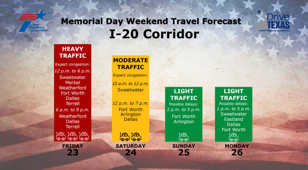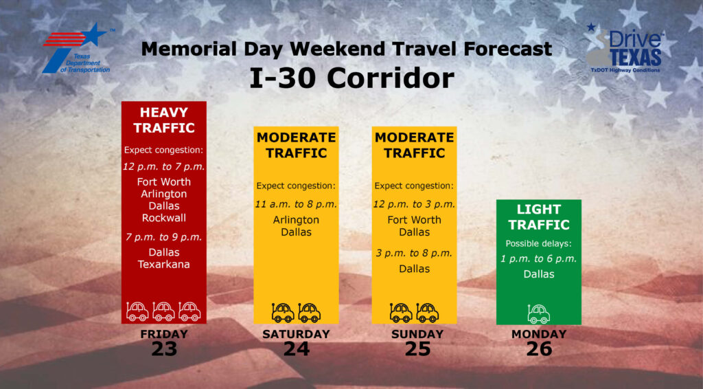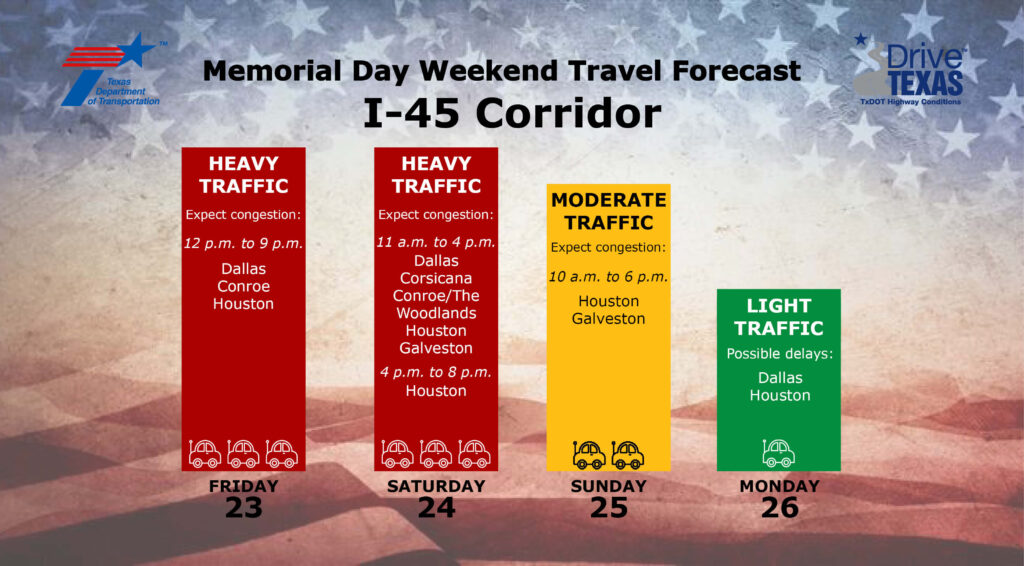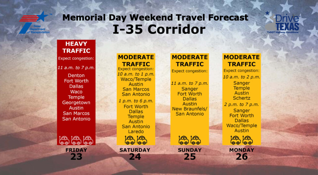 See the Graphics below for you Texas travel plans for the Memorial Day Weekend: