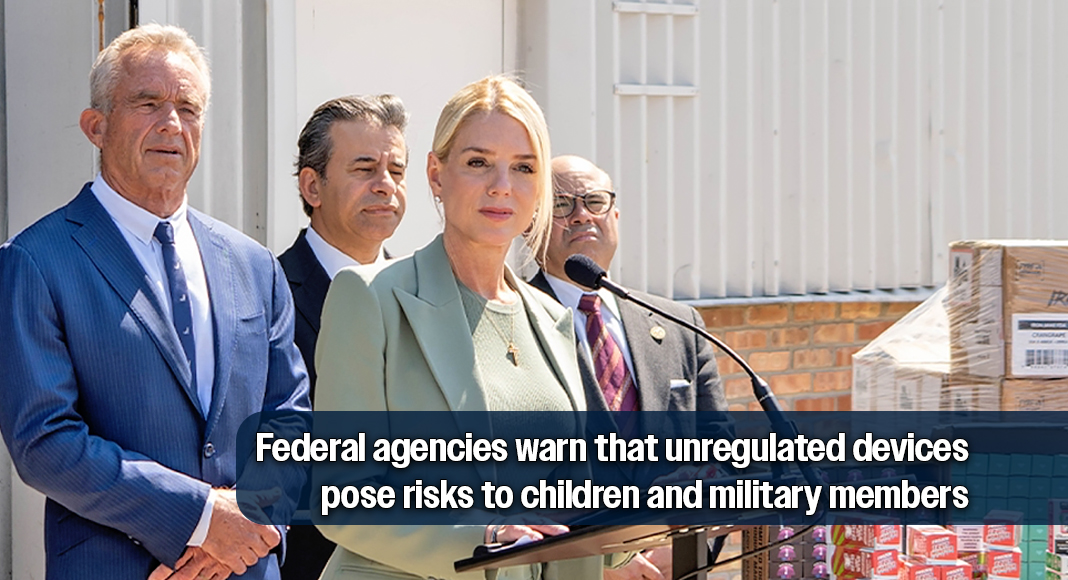 “These are what our teens, our college kids, and often young members of our military are using,” Bondi said, warning that the products bypass safety standards required for domestic manufacturers.