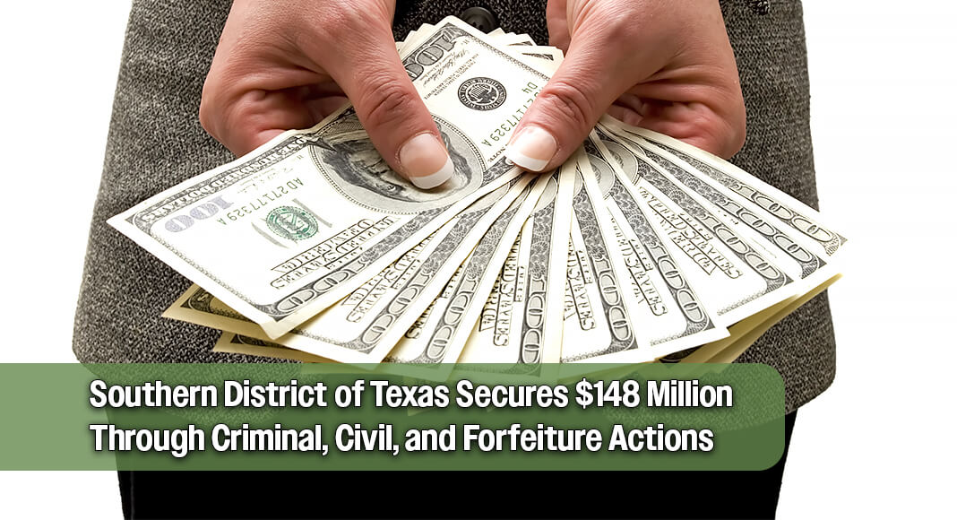 HOUSTON – A total of $148,149,674.47 has been collected in combined criminal, civil and asset forfeiture actions in calendar year 2025.
