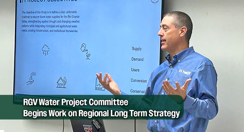 Members of the Advisory Committee include the Cities of Raymondville, Rio Grande City, Brownsville, McAllen, Roma, Los Fresnos, and Donna; the water supply corporations of East Rio Hondo, North Alamo and Sharyland; the flood control/ stormwater districts of Cameron County Drainage District #5, Hidalgo County Drainage District #1, Starr County Drainage System and Willacy County Drainage District #2; the irrigation districts (ID) of Lower Rio Valley ID Managers Association, Cameron ID #2, Delka Lake ID and Hidalgo County ID #6; as well as groundwater conservation districts of Red Sand, Texas International Produce Association and Texas Farm Bureau District 13, the Lower Rio Grande Development Council and the RGV Partnership.