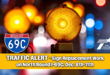 TRAFFIC ALERT- Sign Replacement Work on North Bound I-69C, Dec. 8th-11th