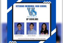Veterans Memorial High School (VMHS) had a total of 13 students earn AP Scholar recognition for their exceptional achievement on Advanced Placement (AP) exams.