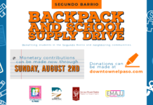 The Downtown Management District (DMD) is once again working with Sacred Heart Church, in support of the “Segundo Barrio Backpack Drive,” an effort to provide backpacks and school supplies for students in the El Segundo Barrioneighborhood of Downtown El Paso and surrounding areas.