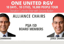 The One United RGV tour will be distributing food at two locations in Pharr-San Juan-Alamo ISD on Tuesday, May 5, 2020 as part of their 10-day tour.