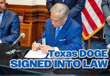AUSTIN — Governor Greg Abbott today signed Senate Bill 14, also known as Texas DOGE, into law at the Texas Capitol in Austin. Passed during the...