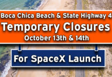 Boca Chica Beach &  State Highway 4 Temporary Closures for SpaceX, Oct. 13th & 14th