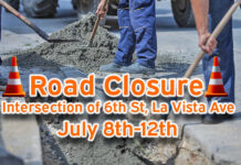 Intersection of 6th St, La Vista Ave Road Closure Roadway Improvements, July 8th-12th