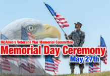 McAllen’s Veterans War Memorial Committee Memorial Day Ceremony, May 27th