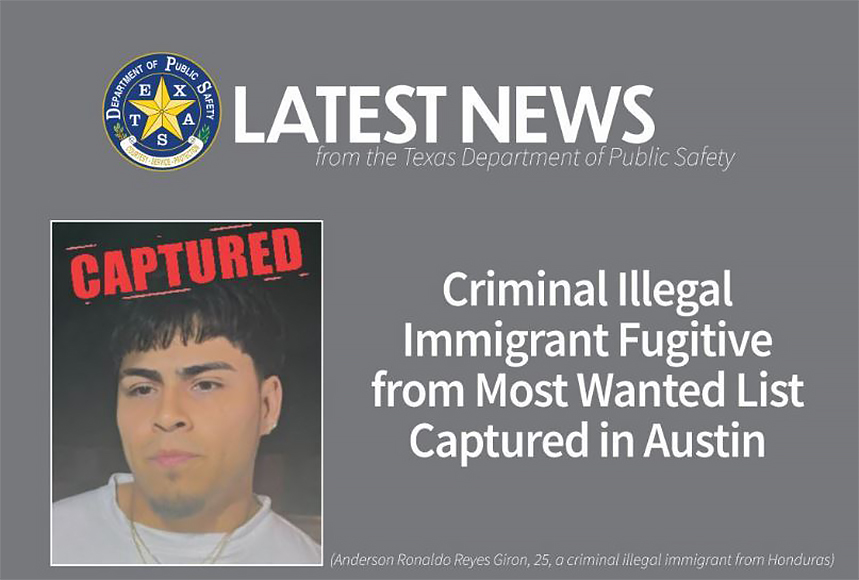 Last week, DPS announced another fugitive from Texas’ 10 Most Wanted Criminal Illegal Immigrants List was captured in Austin.