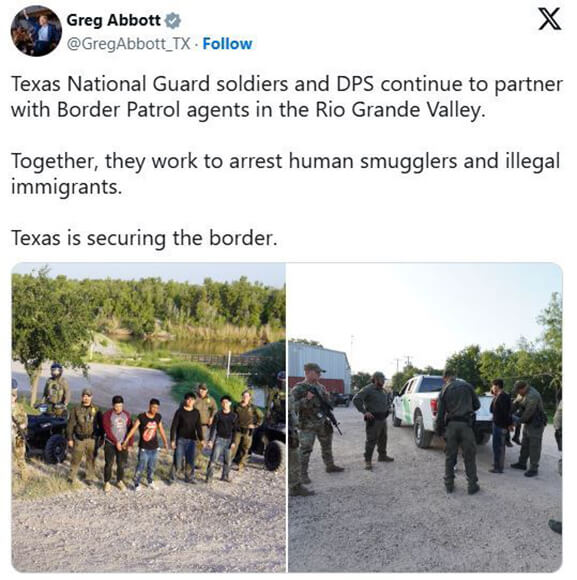 Last week, Governor Abbott took to X to highlight DPS agents arresting illegal immigrants and human smugglers attempting to illegally enter the United States.