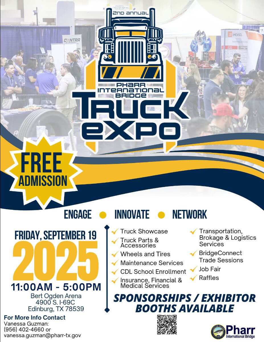 Pharr, Texas – The City of Pharr and the Pharr International Bridge invite the community, industry leaders, and stakeholders to the 2nd Annual Truck Expo, a FREE event showcasing the latest in the trucking and logistics industry.