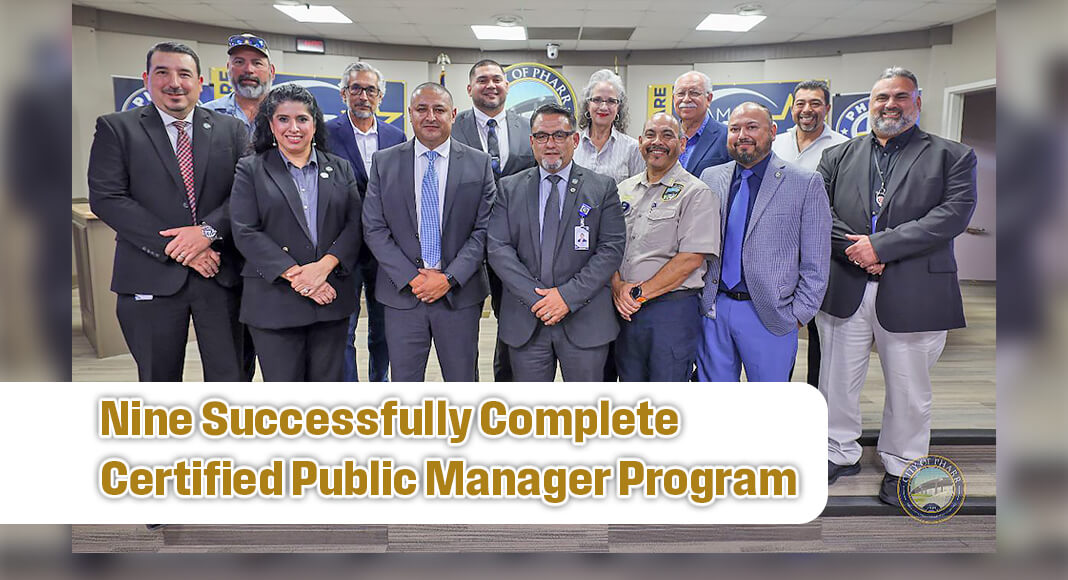 The Pharr City Commission and City Manager Dr. Jonathan B. Flores recognized nine dedicated City of Pharr employees for their successful completion of the prestigious Certified Public Manager (CPM) Program from the University of Texas Rio Grande Valley (UTRGV). The City Commission commended the graduates and highlighted their achievements as a testament to Pharr’s ongoing investment in employee development and public service excellence.