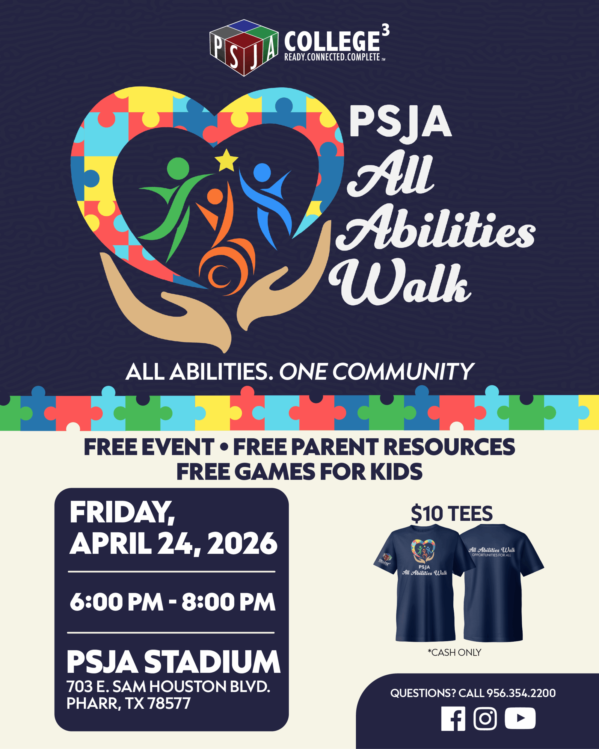 PHARR, Texas – Pharr-San Juan-Alamo ISD will be hosting the 2026 PSJA All Abilities Awareness Walk on Friday, April 24, 2026, at the PSJA Stadium from 6:00 PM – 8:00 PM.