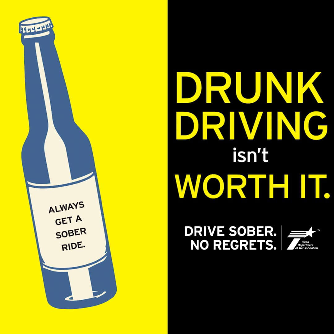 Drive Sober. No Regrets. is an important part of TxDOT’s Drive like a Texan: Kind. Courteous. Safe. initiative. Drive like a Texan is about embracing the pride, camaraderie and responsibility of being a Texan on the road. By making thoughtful choices, we can all help keep each other safe. Learn more at DriveLikeATexan.com.