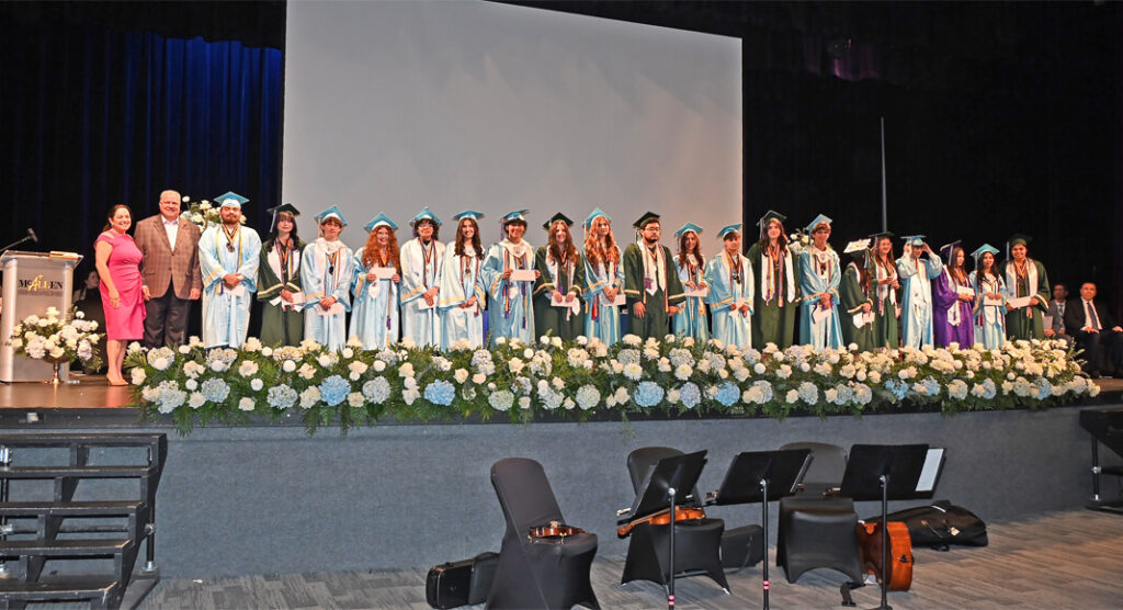 Sony Rego, her husband Albert Rego, and their business partner Fred Harms, co-owners of Santa Fe Steakhouse and founders of The Santa Fe Steakhouse Foundation, joined McAllen ISD, Lamar Academy staff, and families in celebrating the Psi Class of 2025 during Lamar Academy’s International Baccalaureate (IB) Pinning Ceremony.