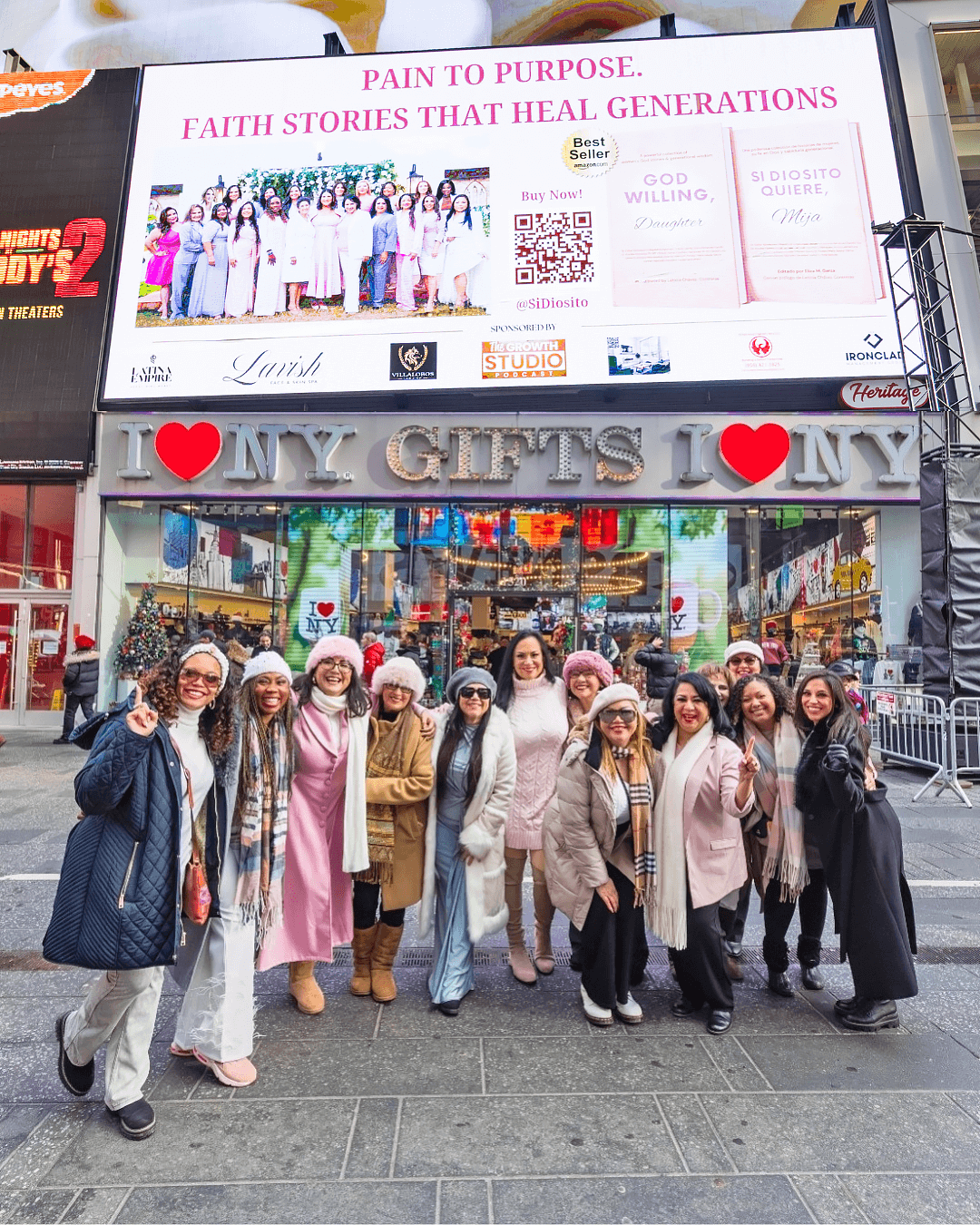 Si Diosito Quiere, Mija (God Willing, Daughter) — a groundbreaking anthology curated by award-winning author Eliza M. Garza — recently transformed Times Square into a public declaration of faith, identity, and legacy. Featuring twenty-one women and testimonies, the anthology brings deeply personal stories of breaking points turned breakthroughs to one of the most visible stages in the world.