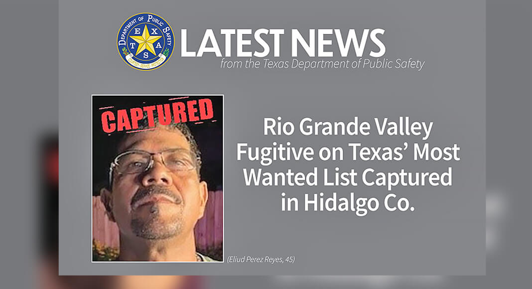 AUSTIN – The Texas Department of Public Safety (DPS) announces the capture of another fugitive from Texas’ 10 Most Wanted Fugitives List—this time in Hidalgo Co. Eliud Perez Reyes, a violent offender wanted in multiple counties, was arrested on Monday, May 26. A Crime Stoppers reward will not be paid for his arrest.