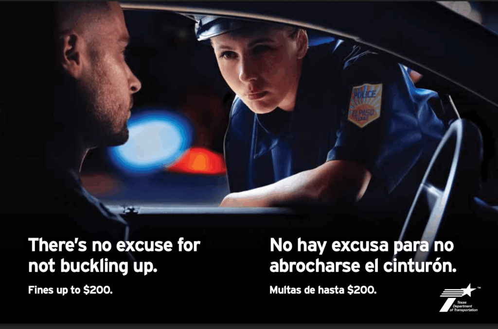 AUSTIN – It doesn’t matter who you are. It doesn’t matter what you do. Everyone needs to buckle up. The Texas Department of Transportation (TxDOT) is working with law enforcement to remind Texas drivers to wear their seat belt every ride, every time.